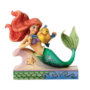 Jim Shore's Fun with Friends collection showcases the special love between a princess and her pint-sized pal. Ariel frolics with Flounder in this delightful scene from “The Little Mermaid,” handcrafted in Shore’s distinctive folk art style.