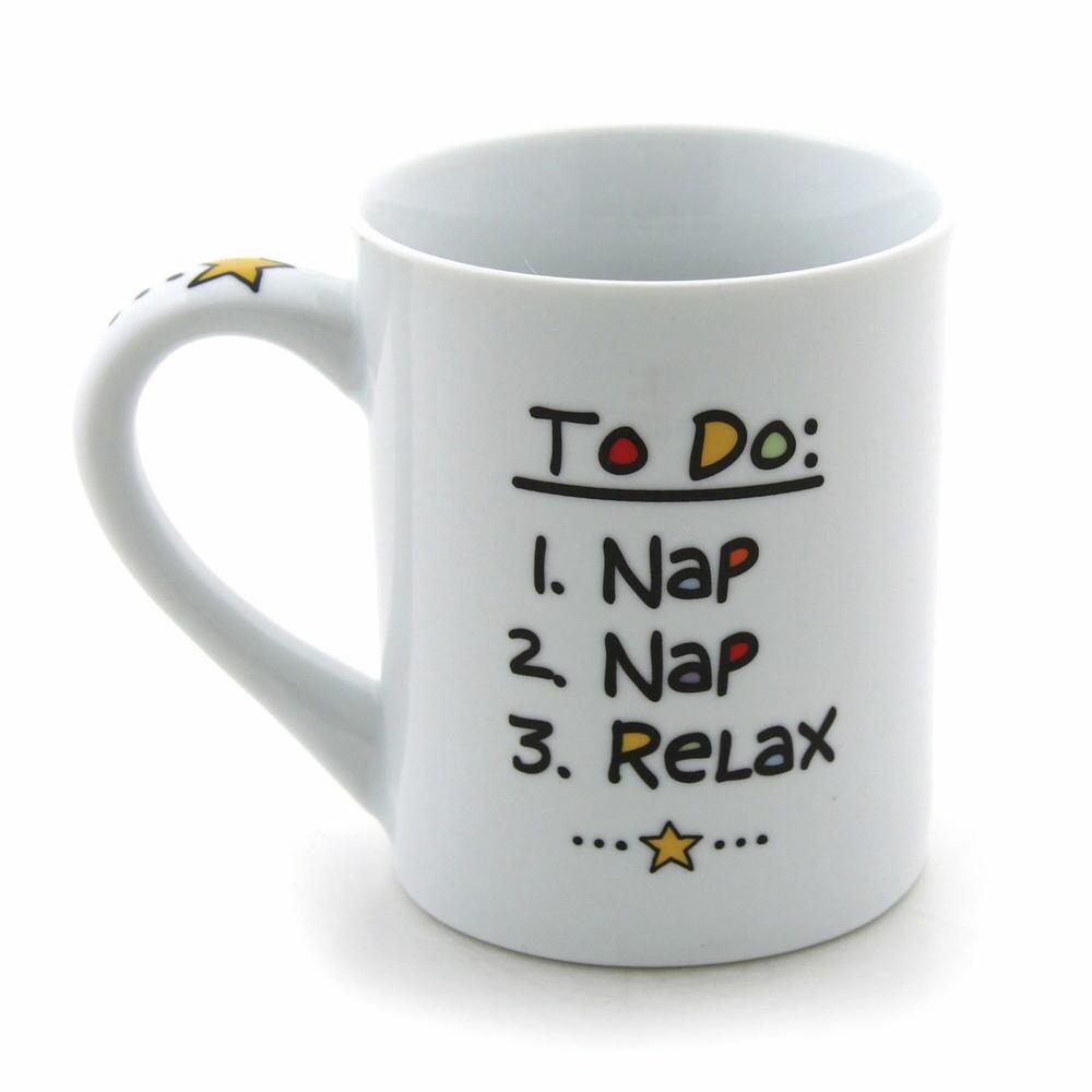 Features front, back and rim messaging: “Retired,” “To Do: Nap, Nap, Relax,” “All Play and No Work”