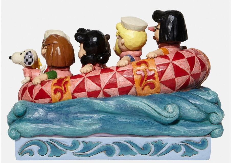 The Peanuts gang gears up for a refreshing river ride in a Jim Shore quilted raft. Charlie Brown and all his friends prepare to plunge, smiles on their faces, ready for a new adventure. This classic crew hopes to crash into your heart and home.