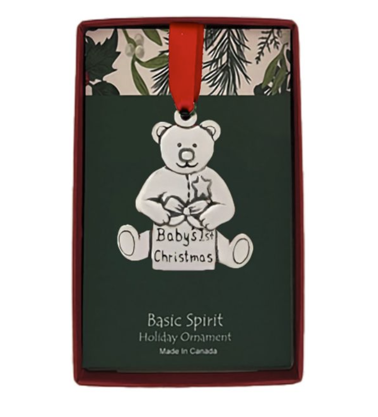 Celebrate a cherished milestone with the Teddy Bear Babys 1st Christmas Pewter Boxed Ornament, elegantly presented in a vibrant red box. This delightful ornament features a beautifully crafted teddy bear, symbolizing love and comfort, making it a perfect keepsake for commemorating a baby's first year. Ideal for gifting or as a treasured addition to any nursery decor, this ornament combines timeless charm with a touch of sophistication. Box size (3" x 5").