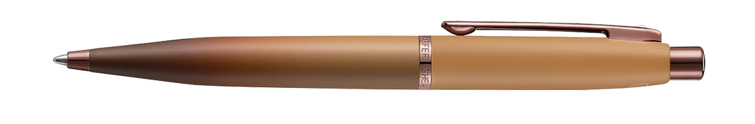 The popular Sheaffer VFM makes an impact with its modern, tapered silhouette. Tailored for coffee lovers with a flair for writing. Comes in a matte gradient brown finish with regal brown PVD trim and with a click propel/repel mechanism.