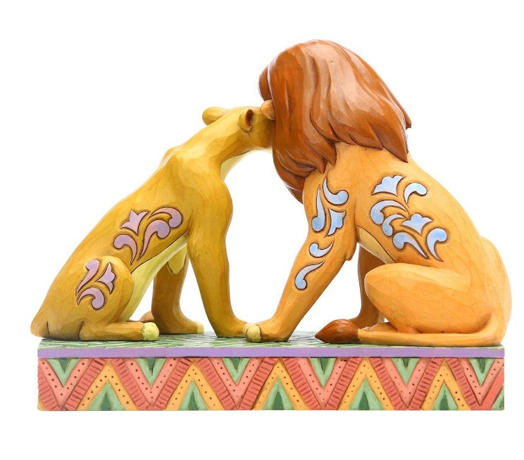 These two lions decorated in folksy Jim Shore rosemaling are an essential and precious piece to your Disney collection. Simba and Nala, childhood friends, fell in love in the jungle. Feel the Savannah love every night with this tender scene.